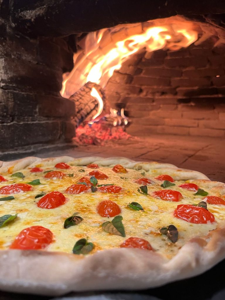Um clube com pizzaria e casa de massas, tudo feito em forno à lenha.